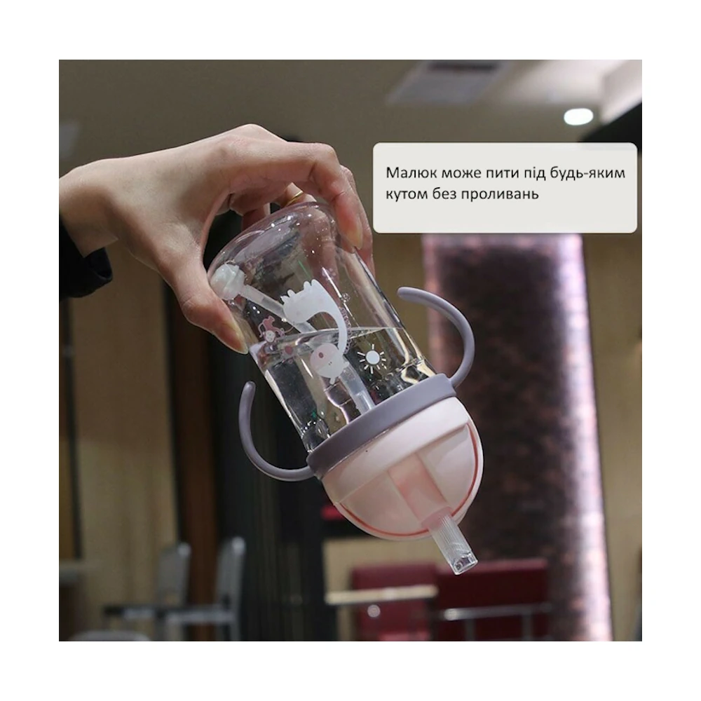 Детская бутылочка 350 мл с трубочкой и гравитационным шариком — удобная непроливайка, из которой ребёнок может пить под любым углом. Оснащена мягкой силиконовой трубочкой, клапаном и крышкой с фиксатором.
