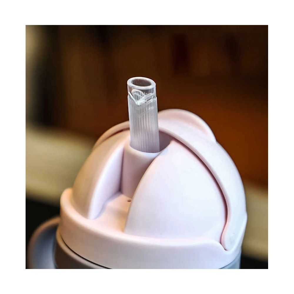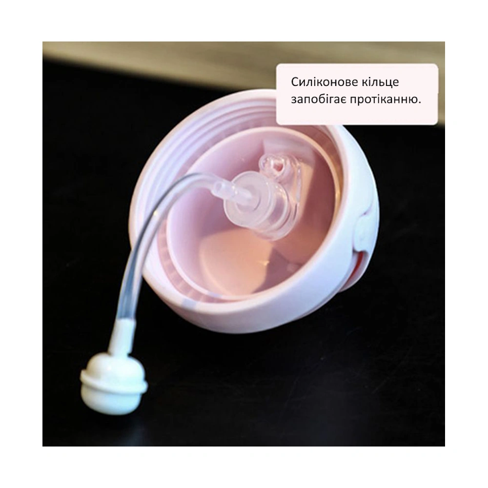 Мягкая силиконовая соломинка бережно контактирует с зубами и дёснами, а клапан предотвращает вытекание жидкости, открываясь только при питье. Плотно закрывающаяся крышка с фиксатором исключает случайное открытие и протечки.