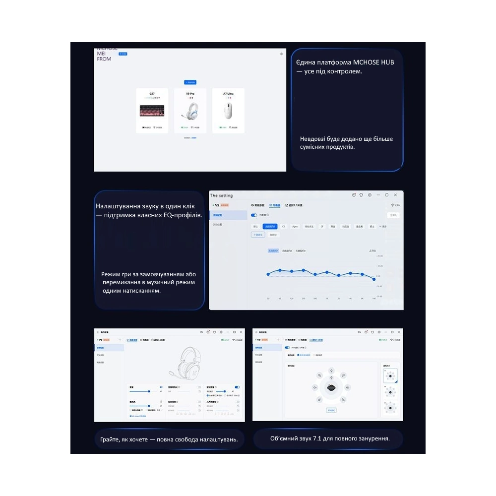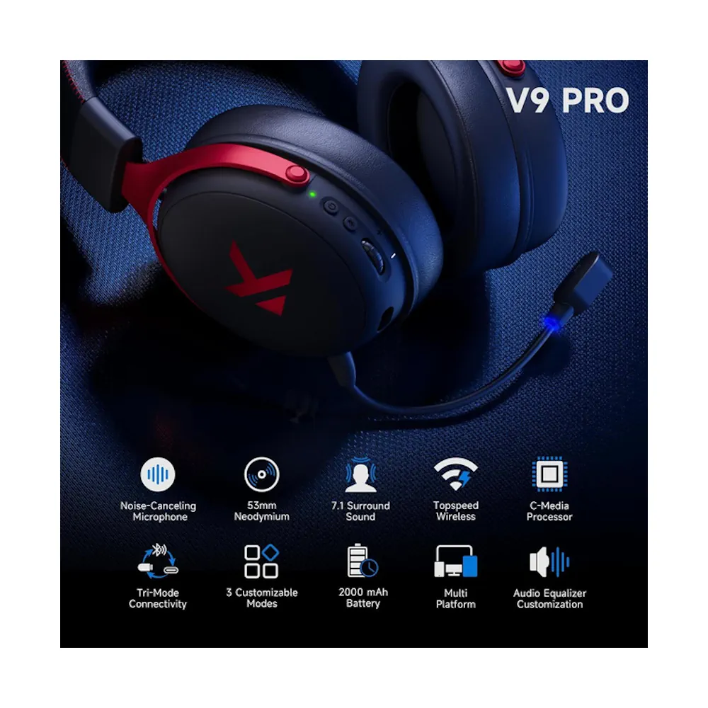 MCHOSE V9 Pro Black-Red — это высококлассная беспроводная игровая гарнитура, созданная для тех, кто требует максимум от звука и комфорта. Мощные 53-мм драйверы с биоцеллюлозными мембранами обеспечивают глубокие басы и точное позиционирование шагов, выстрелов и эффектов в играх.