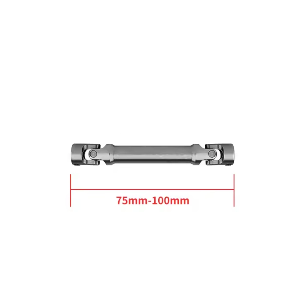 Карданный вал 70/92 мм из нержавеющей стали. Телескопический карданный вал в серебристом исполнении предназначен для радиоуправляемых моделей в масштабе 1/10. Изготовлен из прочной нержавеющей стали, устойчивой к коррозии и механическим нагрузкам. Деталь отличается надёжным шлицевым соединением и точной подгонкой, обеспечивая стабильную работу трансмиссии. Идеально подходит для моделей TRX4, SCX10, Gladiator, TF2 и других совместимых шасси.