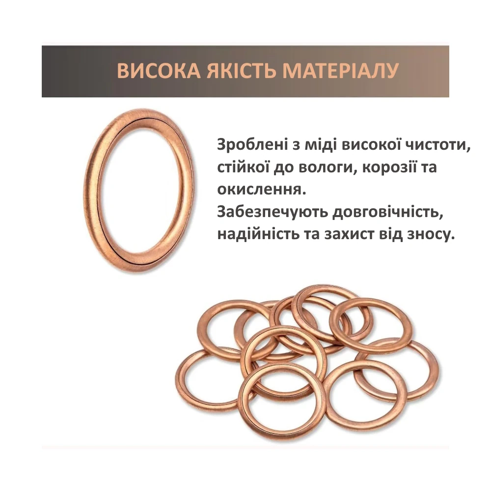 Медные шайбы-прокладки для маслосливной пробки, пустотелые 100 шт.