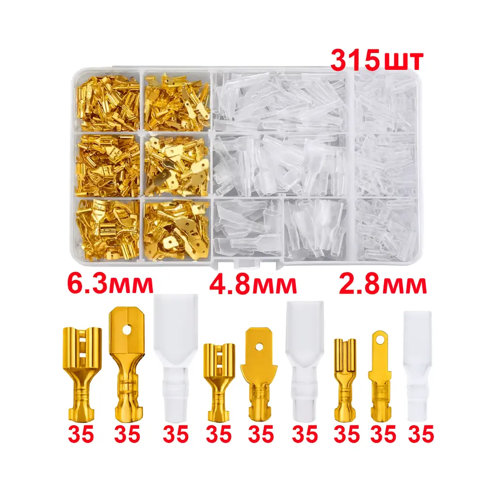 105 × клемм 6.3 мм (35 шт. мама +35 шт. папа +35 шт. колпачки)