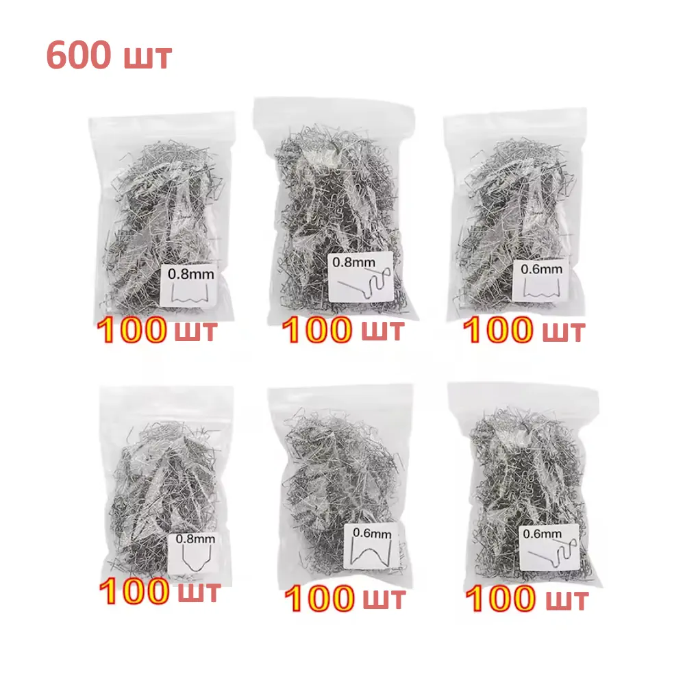 Набор скоб 600 шт (0.6/0.8 мм) для горячего степлера, Включает 6 видов скоб по 100 шт, 4 формы – для ремонта пластика