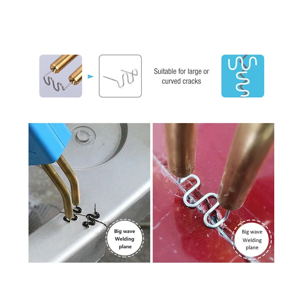 Подходят для большинства ручных сварочных степлеров. Быстро нагреваются, легко встраиваются в пластик, обеспечивая надёжную фиксацию.