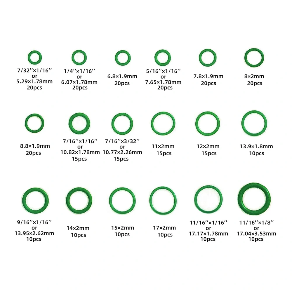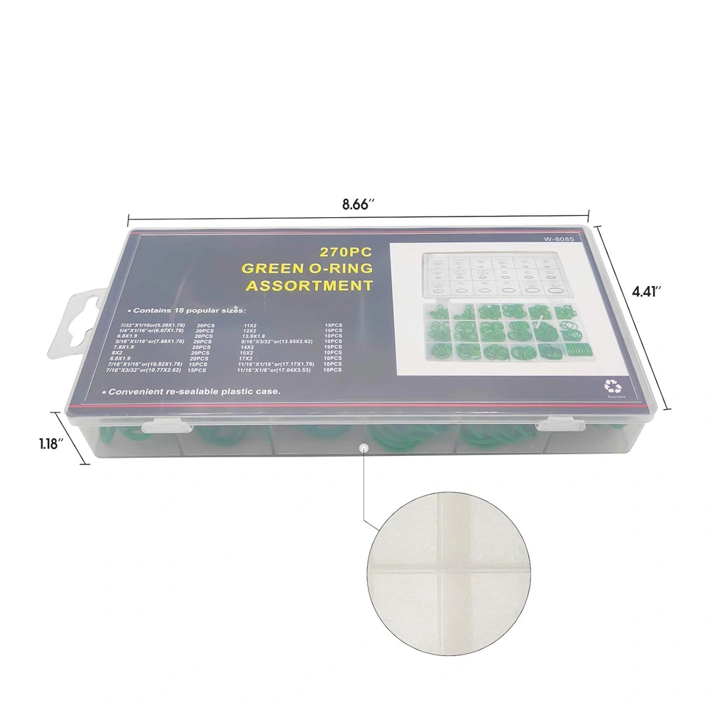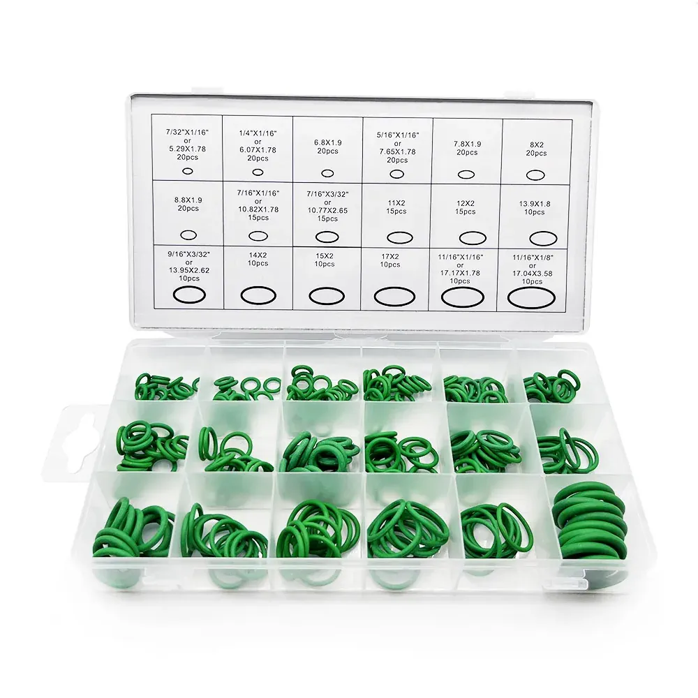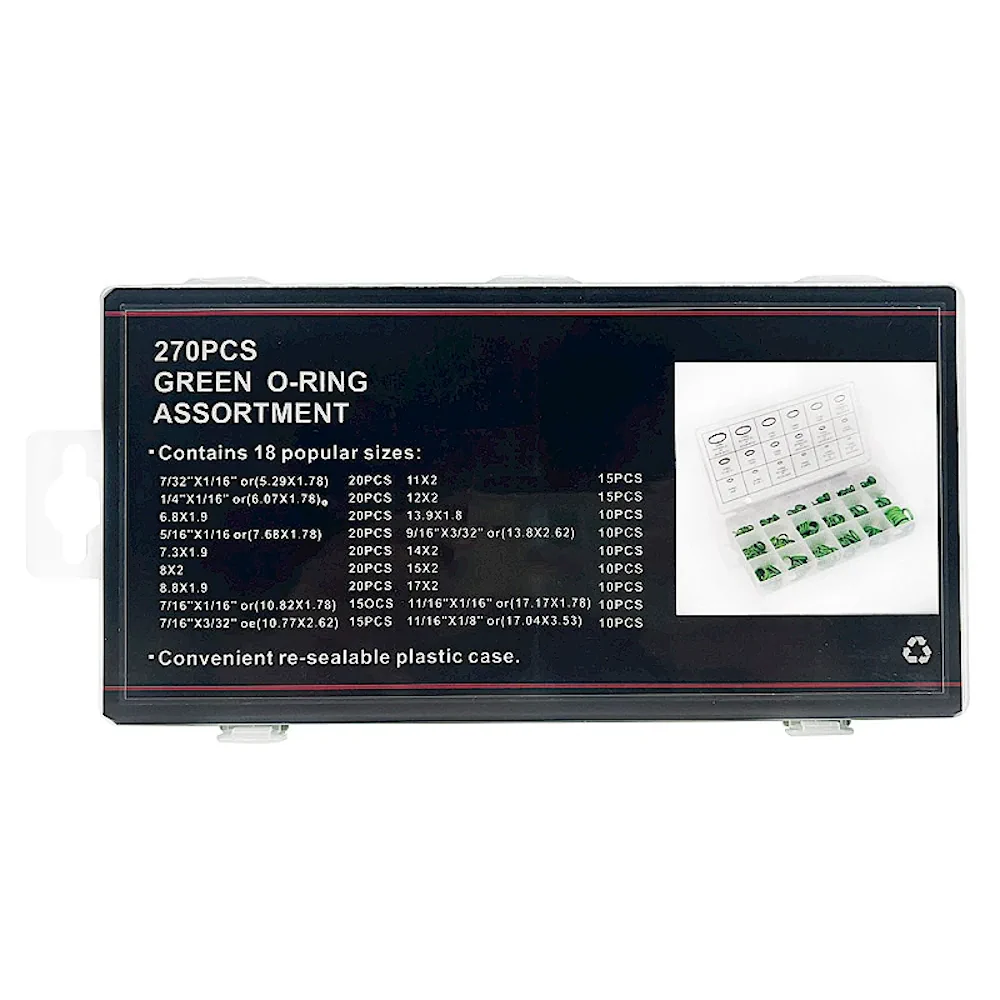 Набор зелёных уплотнительных колец O-Ring для автокондиционера (270 шт.) в кейсе, маслостойкие.