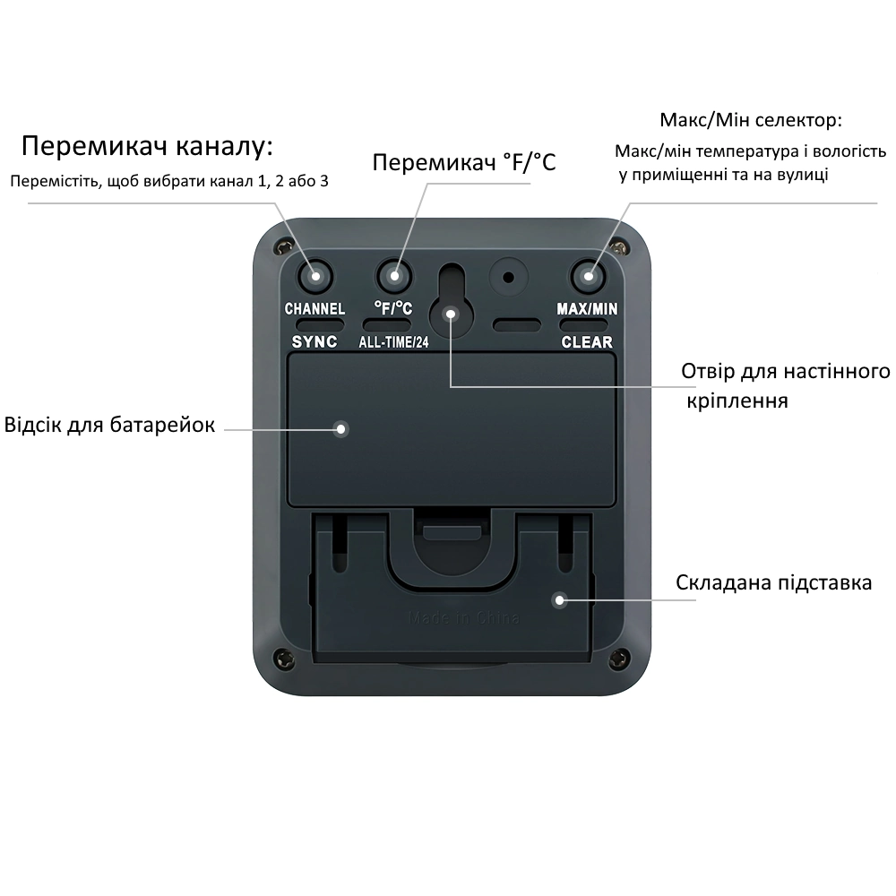 TP60C поддерживает подключение до трёх удалённых датчиков, передающих данные на расстоянии до 60 метров. Датчики устойчивы к влаге и подходят для размещения на открытом воздухе. Устройство позволяет отслеживать изменения микроклимата и фиксирует максимальные и минимальные значения за последние 24 часа.