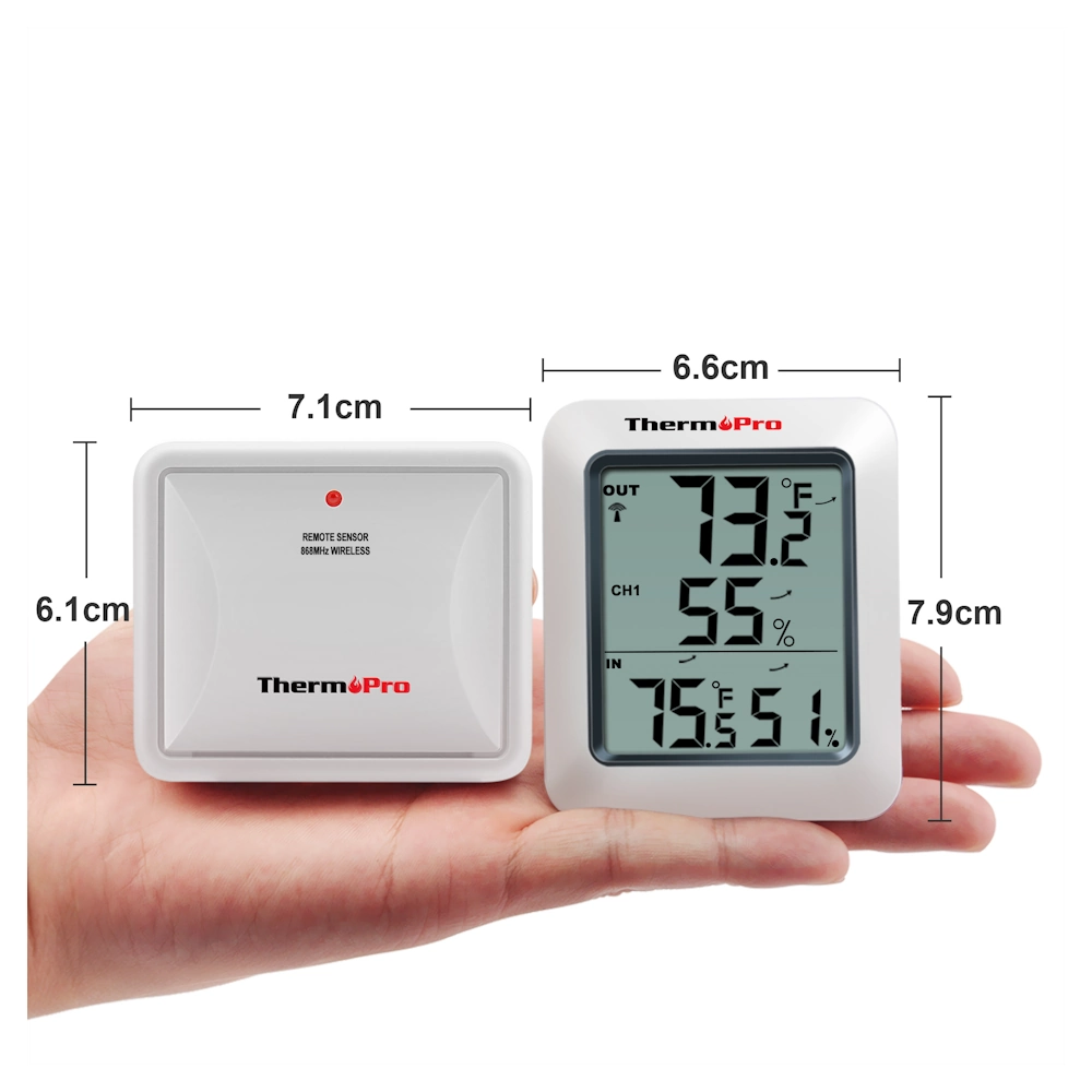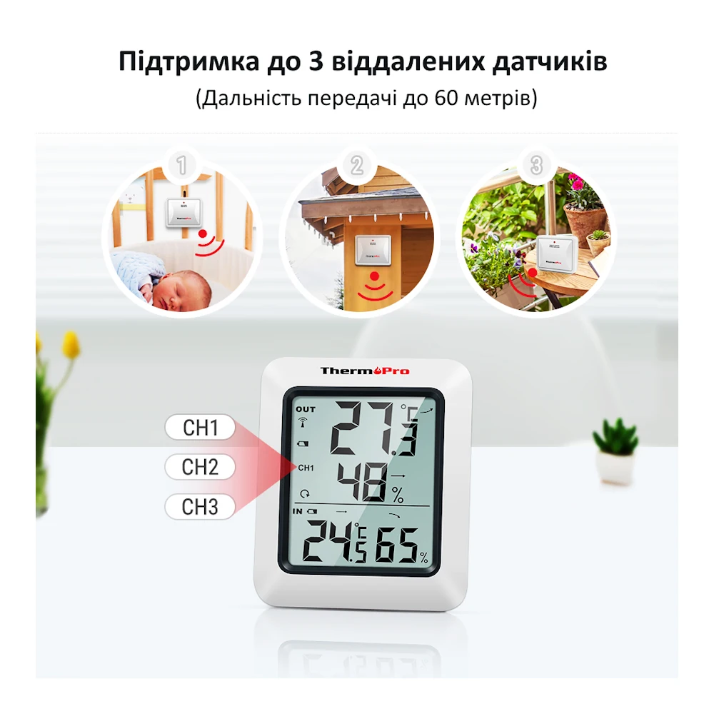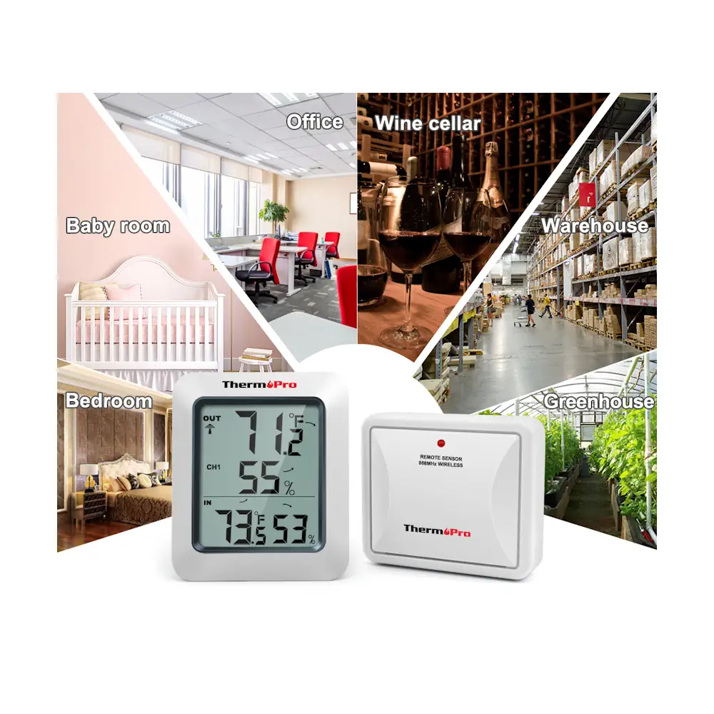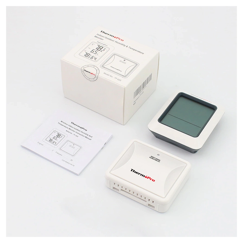 ThermoPro TP60C — это высокоточный цифровой термометр-гигрометр с беспроводным датчиком, предназначенный для одновременного контроля температуры и влажности внутри помещения и на улице. Устройство оснащено большим ЖК-дисплеем с возможностью отображения данных с до трёх внешних датчиков. Надёжный выбор для дома, теплиц, винных погребов, детских и спален.