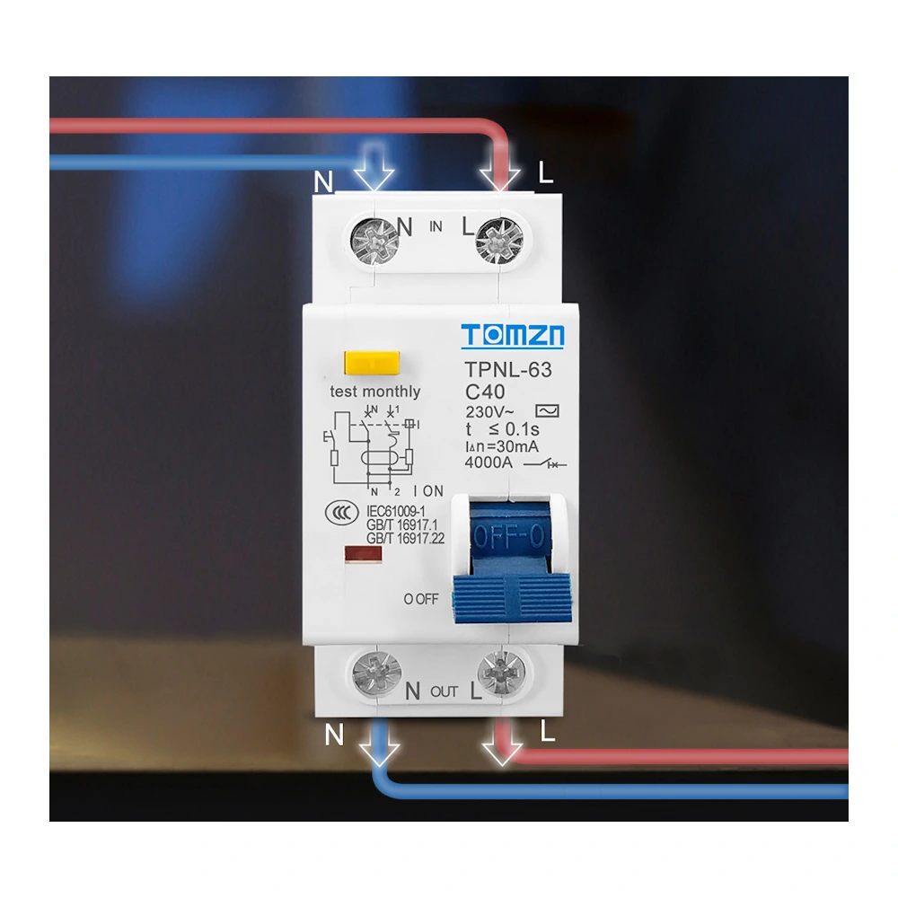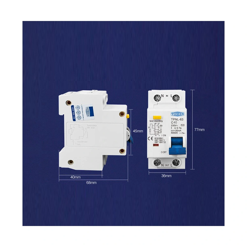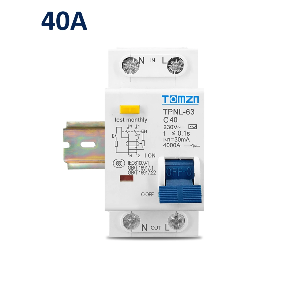 TOMZN TPNL-63 C40 Диффавтомат 40A 30мА — автоматический выключатель с защитой от перегрузки и утечки тока предназначен для работы в однофазных электрических сетях 230 В. Устройство обеспечивает защиту от короткого замыкания, перегрузки и утечки тока, предотвращая возможные электрические аварии и обеспечивая безопасность пользователей.