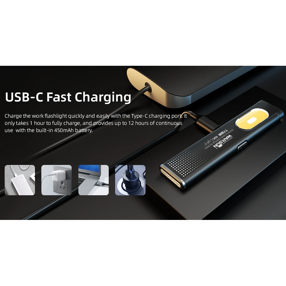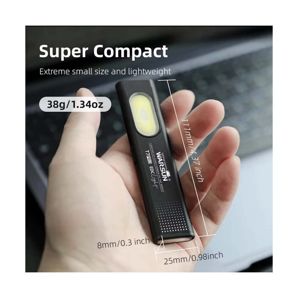 Warsun T7 Pro 450 мА·ч (комплект 2 шт) — плоский LED мини-фонарик USB-C, USB-C с клипсой и магнитом (EDC Work Light).