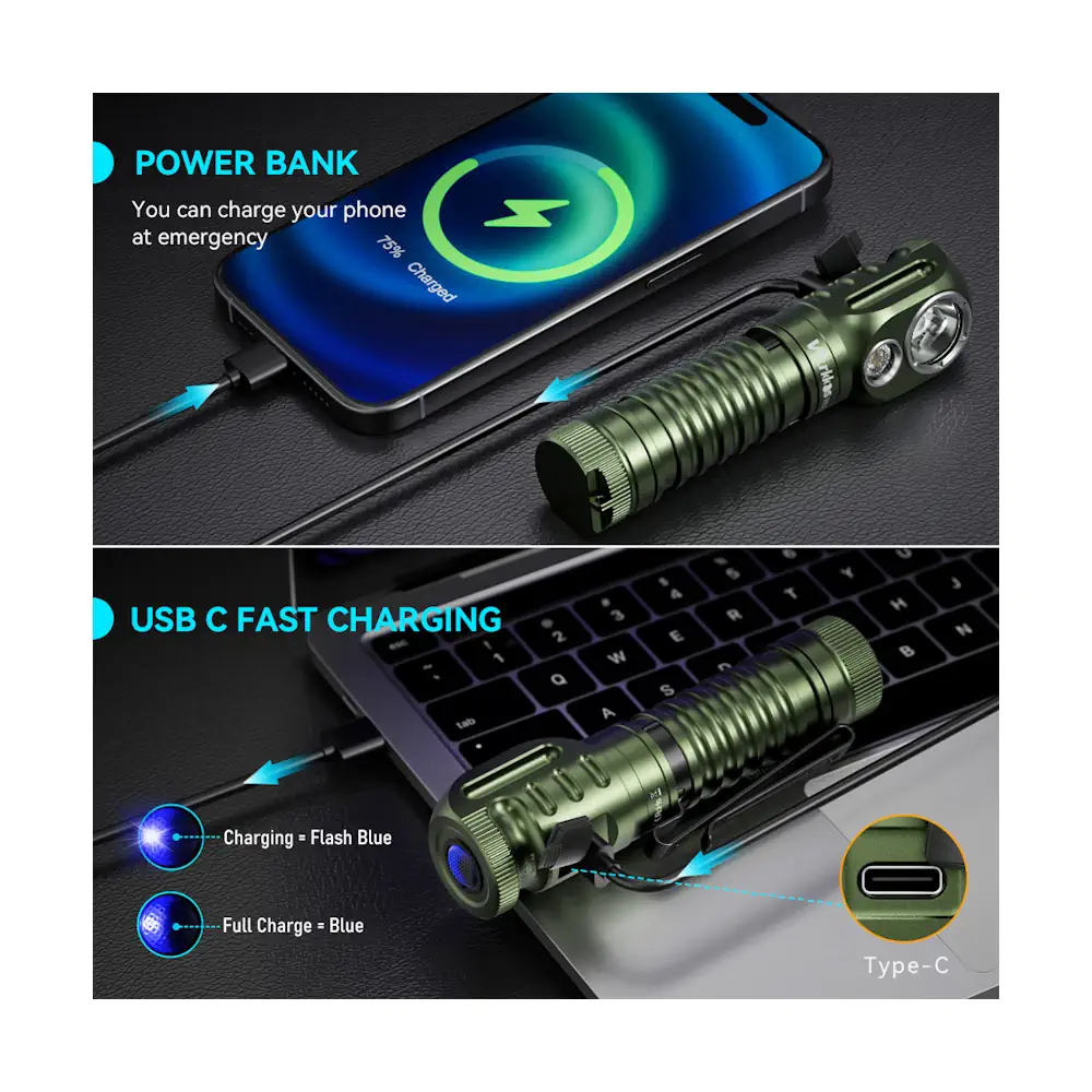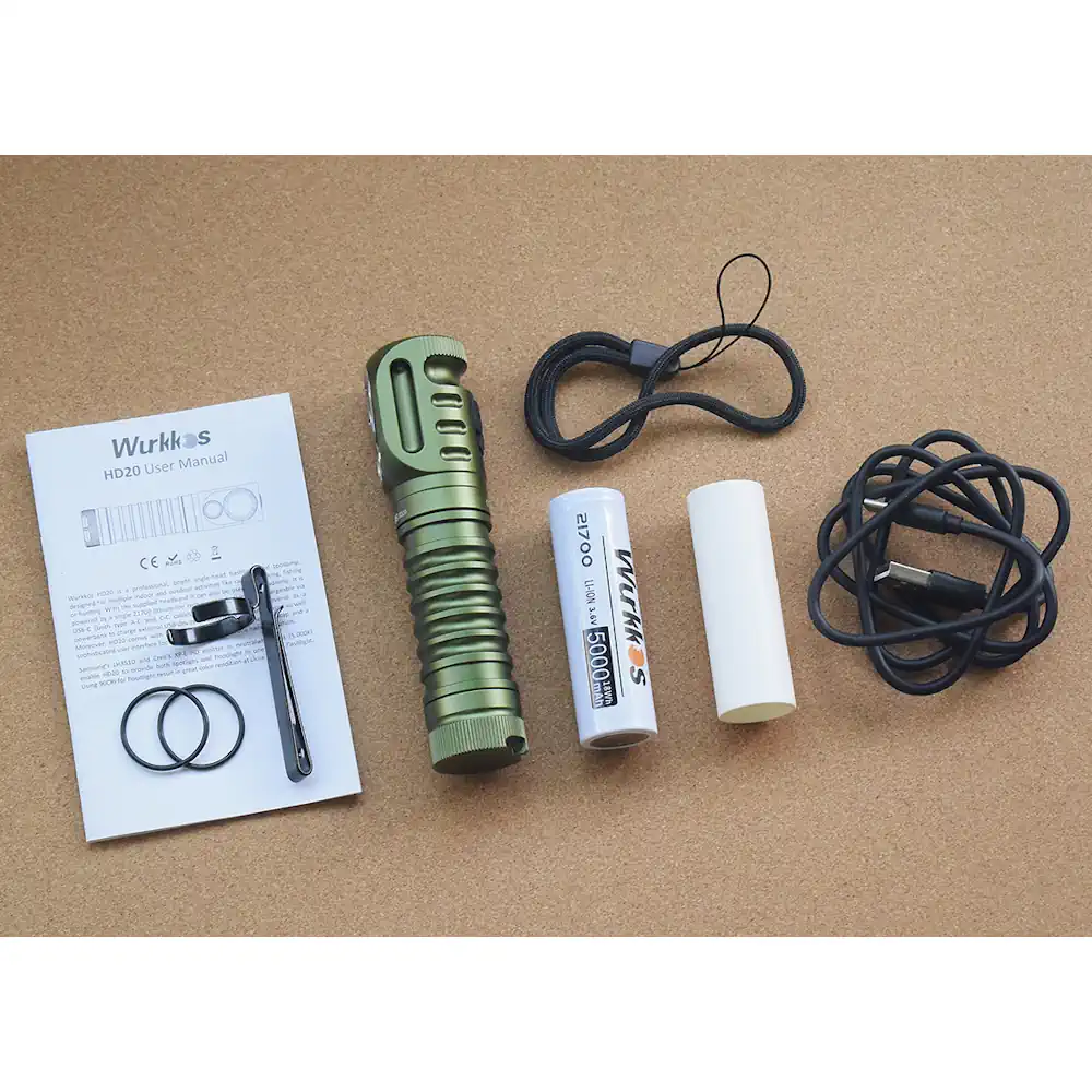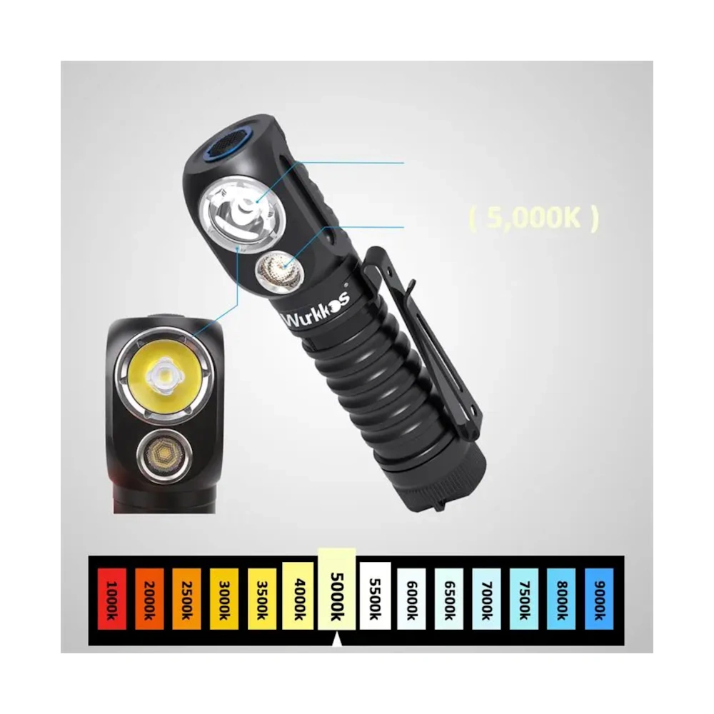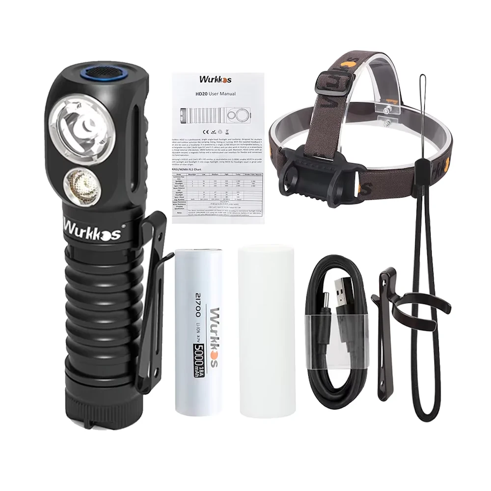 Wurkkos HD20 (2000 лм, IP68, USB-C, Power Bank) Г-образный налобный фонарь + 5000 мА·ч АКБ в комплекте