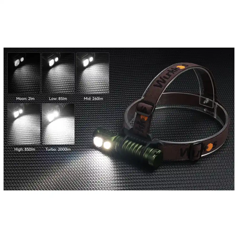 Wurkkos HD20 (2000 лм IP68 USB-C Power Bank) — многофункциональный Г-образный налобный фонарь профессионального класса для туризма, кемпинга, походов, рыбалки, технических и ремонтных работ, а также аварийного освещения.