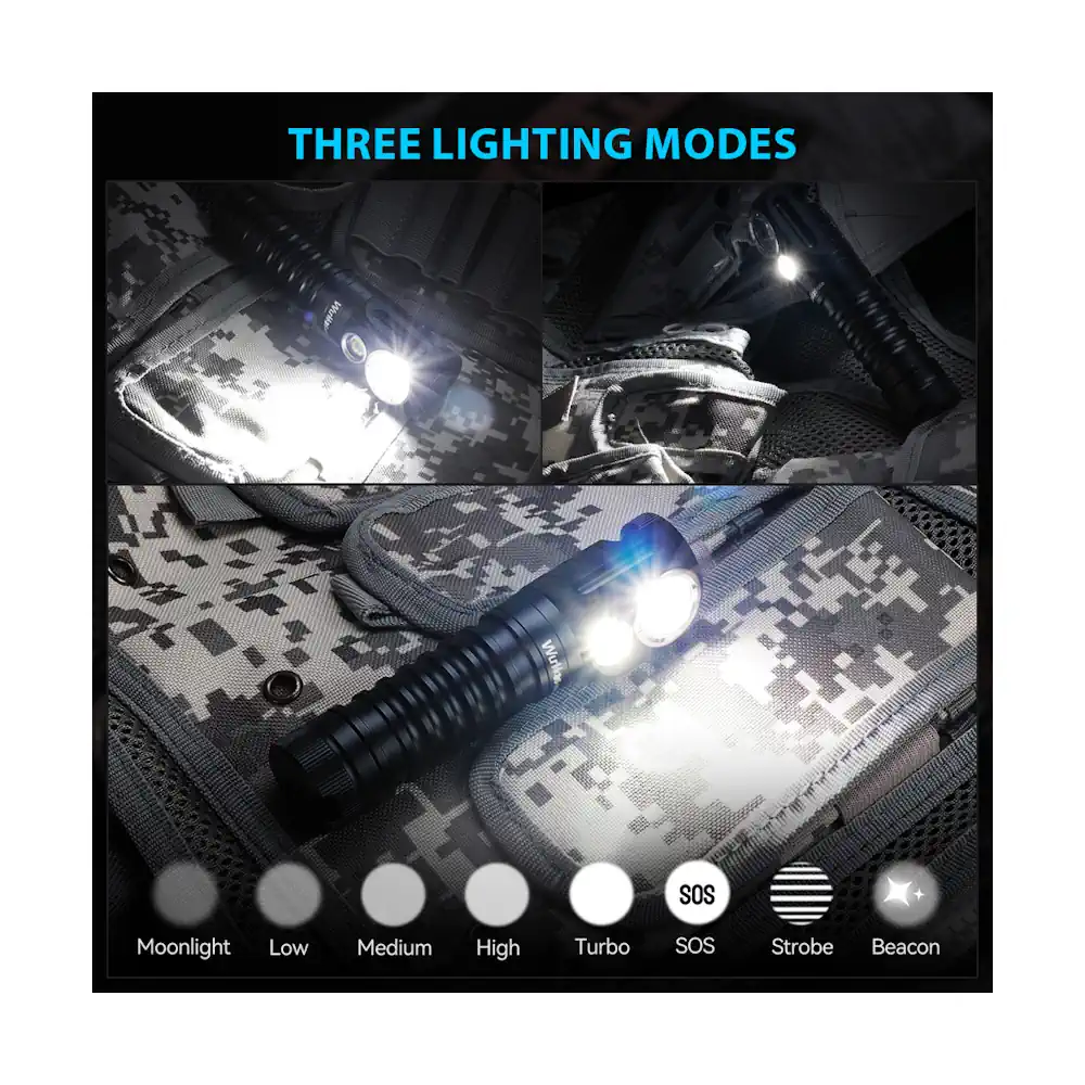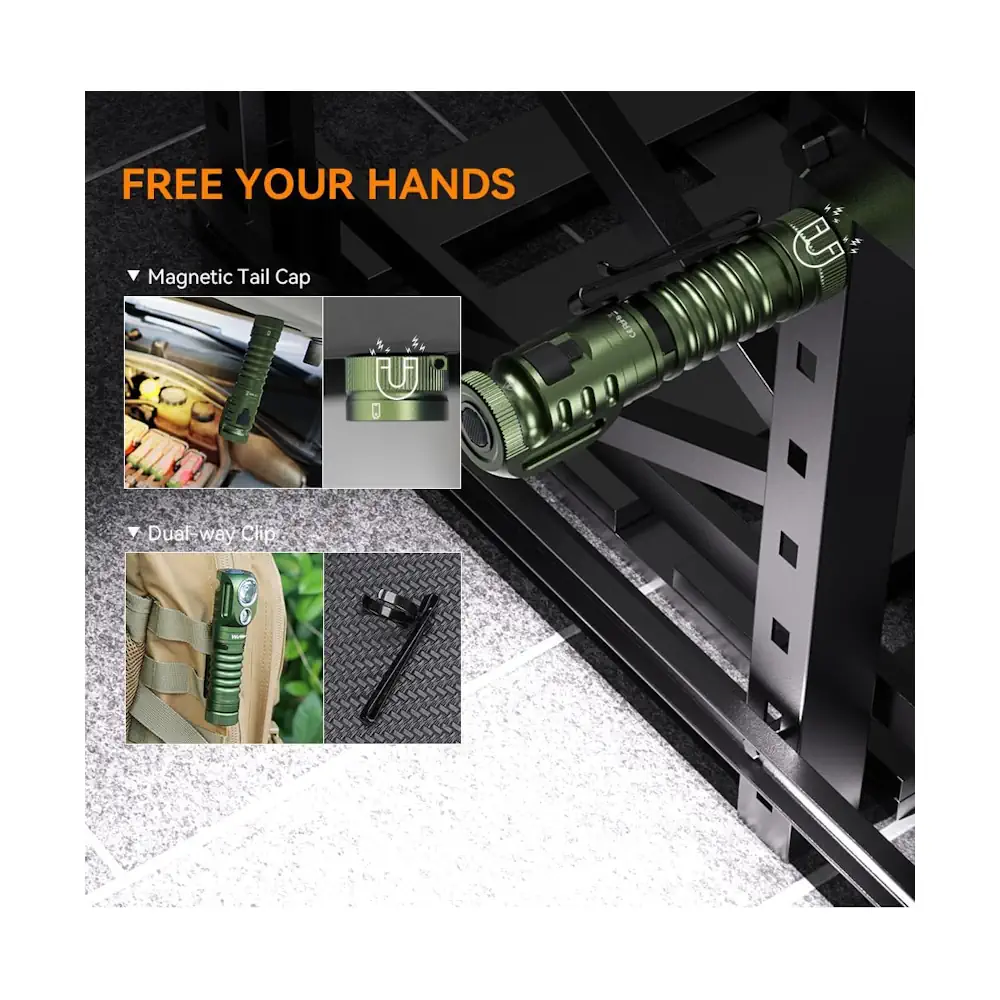 Г-образная (L-shape) компоновка позволяет использовать фонарь как налобный, ручной или стационарный рабочий светильник. Магнитный хвостовик, клипса и продуманное электронное управление обеспечивают универсальность и удобство эксплуатации.