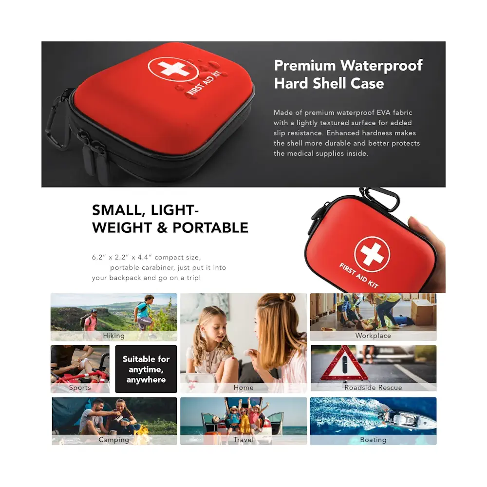 Компактная пустая сумка-аптечка с жёстким влагостойким корпусом из EVA предназначена для удобного и безопасного хранения средств первой помощи дома и в дороге. Лёгкая, прочная и оснащённая карабином, она легко помещается в рюкзак, автомобиль или дорожную сумку.